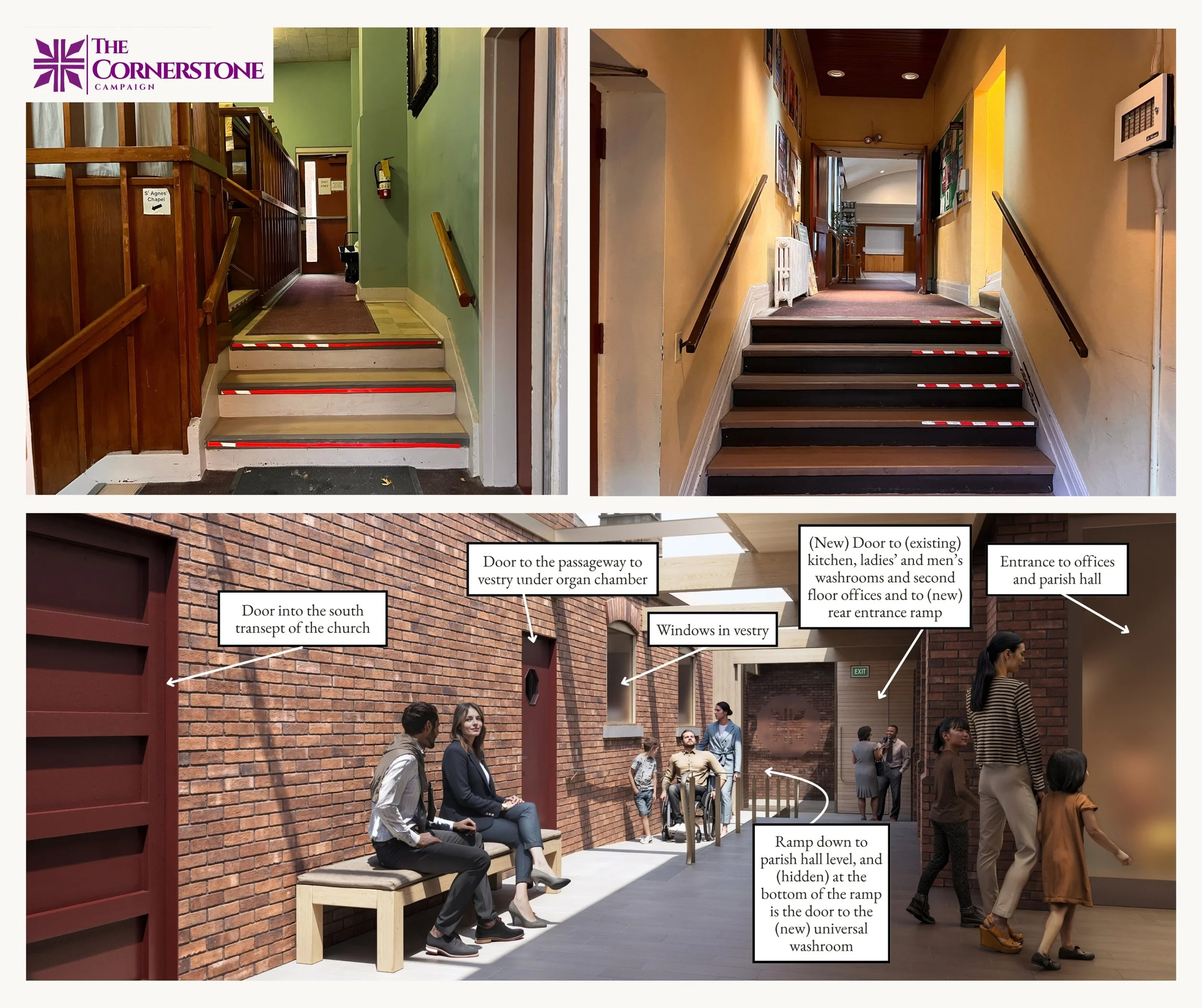 We’re excited to share a visual preview of the Cornerstone Project—showing the current entrances to the church and parish hall alongside the new Accessibility Atrium design. To view the labelling in detail, download this PDF copy of the images. Or look for our large display boards in the church hall. — The Cornerstone Committee