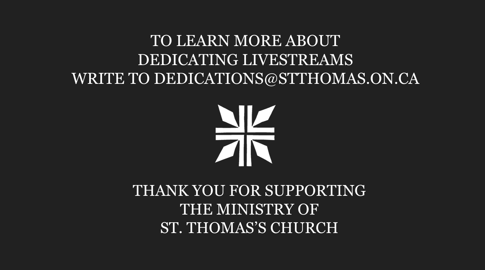Livestream dedications, like the dedication of altar flowers, honour loved ones who have died or express thanksgiving for significant anniversaries. A birthday, a wedding anniversary, or a baptism can by celebrated publicly by being recognized in the service’s livestream.