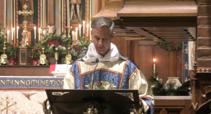 As subdeacon, reading a lesson during Christmas Eve Midnight Mass in 2023.